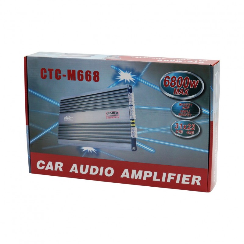 Ο ενισχυτής CTC-M668 3200 επιτρέπει την αύξηση της ισχύος των ηχείων του αυτοκινήτου. Πρόκειται για μια συσκευή που ενισχύει το ηλεκτρικό σήμα που λαμβάνει από το ηχοσύστημα του αυτοκινήτου και το μεταφέρει στα ηχεία για αναπαραγωγή. Είναι ένας τετρακάναλος ενισχυτής που σημαίνει πως μπορεί να τροφοδοτήσει έως και τέσσερα ηχεία.