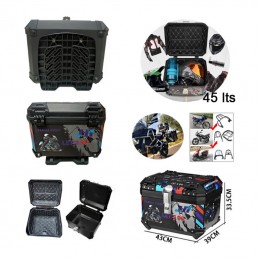 Η μπαγκαζιέρα μοτοσυκλέτας είναι μια εξαιρετική επιλογή για τους λάτρεις της οδήγησης. Με χωρητικότητα 45 lt, προσφέρει άπλετο χώρο για να μεταφέρετε τα απαραίτητα κατά την διάρκεια των ταξιδιών σας. Είναι ιδανική για να κρατάτε τα προσωπικά σας αντικείμενα ασφαλή και οργανωμένα, ενώ η μαύρη της απόχρωση προσθέτει μια κομψή και μοντέρνα αίσθηση στη μοτοσυκλέτα σας.