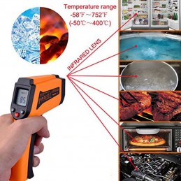 Το GM400 μετρά την θερμοκρασία των υλικών χωρίς επαφή, από απόσταση με υπέρυθρες ακτίνες. Με ευέλικτο σχεδιασμό λαβής, φωτιζόμενη οθόνη LCD και μεγάλα ψηφία για ορατότητα σε χαμηλό φωτισμό.
