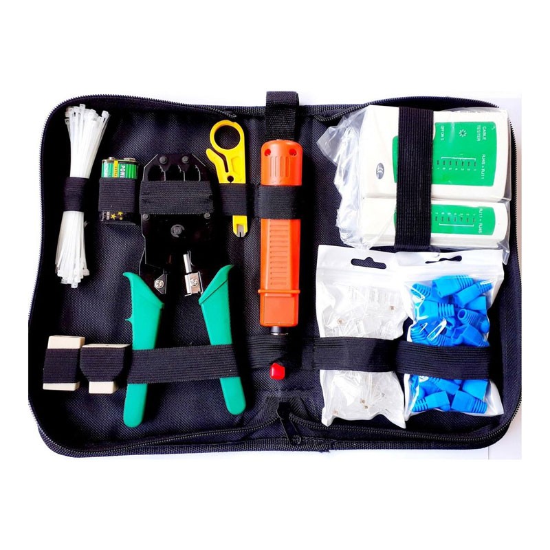 Σετ εργαλείων για δικτυακές εργασίες, σε κασετίνα. Είναι κατάλληλο τόσο για επαγγελματίες όσο και για ερασιτέχνες. Κατάλληλο για σύνδεση βυσμάτων σε καλώδια, και έλεγχο της ποιότητας του δικτύου.
