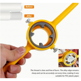 Οι μήτρες είναι κατασκευασμένες από υλικό κράματος και η λαβή είναι από σκληρό πλαστικό, με υψηλή σκληρότητα, αντοχή στη φθορά και μεγάλη διάρκεια ζωής. Με καλή υφή και λεπτή κατασκευή, τα νήματα είναι καθαρά και η επιφάνεια είναι λεία χωρίς γρέζια, προστατεύοντας τα χέρια σας και παρέχοντας ασφαλή και άνετη χρήση. Το πρότυπο νήματος είναι NPT.