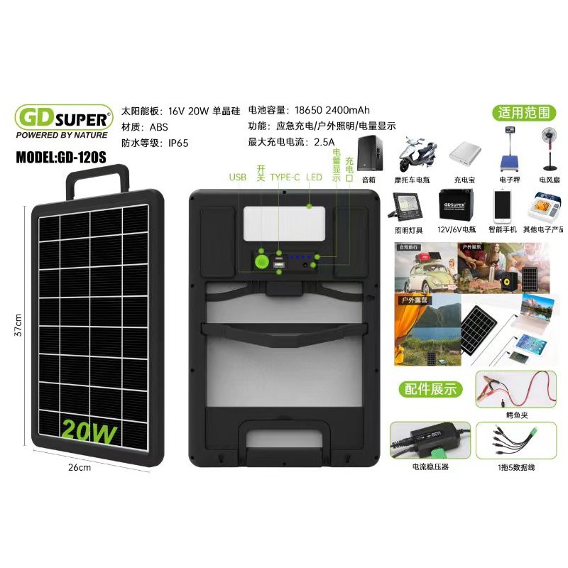 GDSUPER ΠΟΛΥΛΕΙΤΟΥΡΓΙΚΟ ΠΑΝΕΛ 20W ΦΟΡΤΙΣΗΣ ΣΥΣΚΕΥΩΝ GD-120S