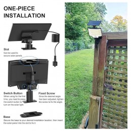 LED ηλιακό επαναφορτιζόμενο, επιτοίχιο φωτιστικό με πάνελ σε ψυχρό λευκό φωτισμό. Τροφοδοτείται μέσω του πάνελ, συλλέγοντας ηλιακή ενέργεια. Με γωνία διάχυσης φωτός 120°. Με τηλεχειριστήριο που σας επιτρέπει να χειρίζεστε τις λειτουργίες απομακρυσμένα.