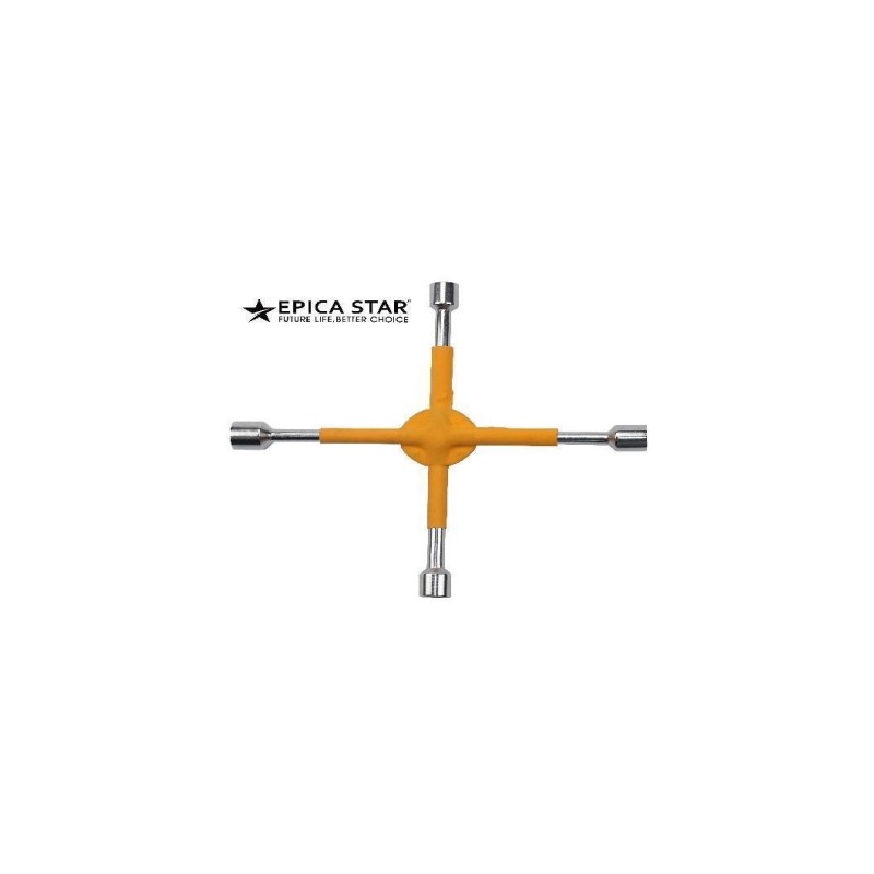 Το μπουλονόκλειδο τροχών αυτοκινήτου της εταιρείας Epica Star χρησιμοποιείται για το σφίξιμο και το λύσιμο μπουλονιών. Το σχήμα "σταυρός" που διαθέτει του επιτρέπει την άσκηση μεγάλης ροπής, κάνοντας πιο εύκολη τη διαδικασία σύσφιξης ή χαλάρωσης δύσκολων μπουλονιών.