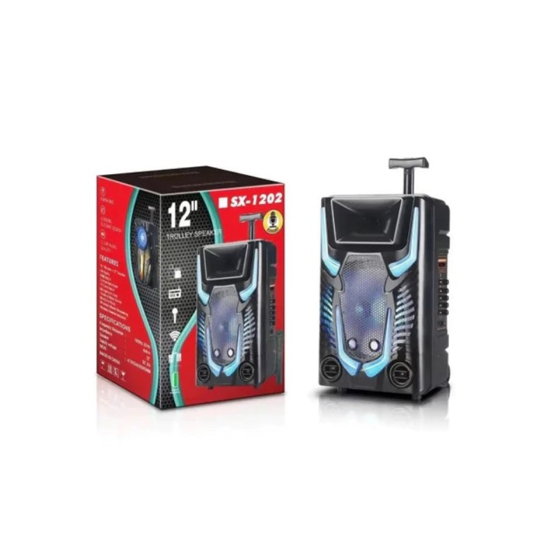 ΦΟΡΗΤΟ ΗΧΕΙΟ ΤΥΠΟΥ ΤΡΟΛΕΙ 12''/800W ΜΕ ΑΣΥΡΜΑΤΟ ΜΙΚΡΟΦΩΝΟ SX-1202