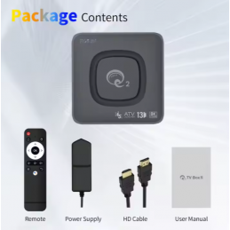Συσκευασία TV box ,καλώδιο HDMI ,Τηλεχειριστήριο ,Τροφοδοτικό EU 5V 2A