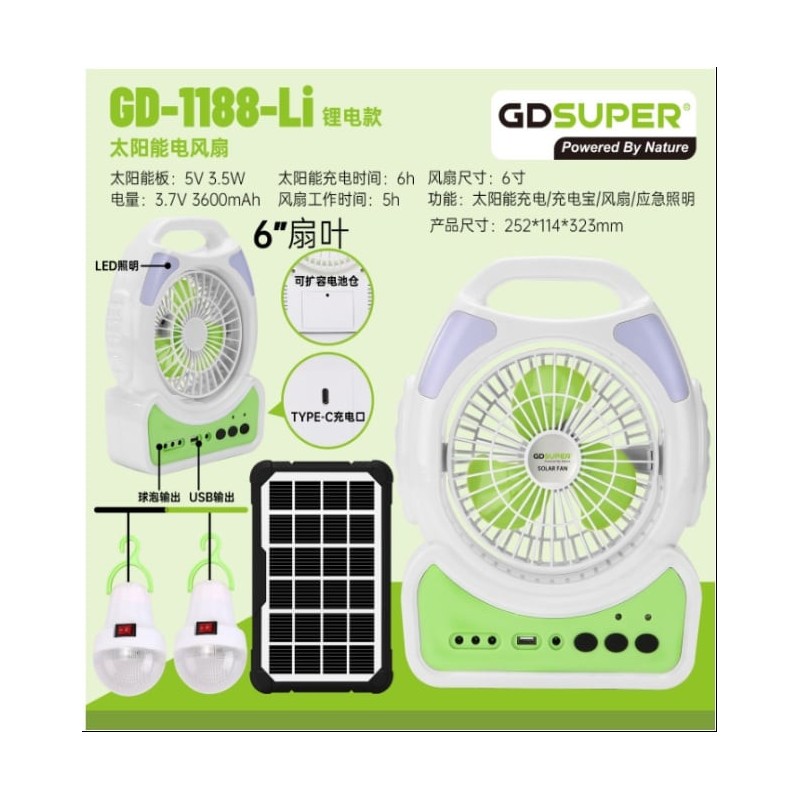 ΦΟΡΗΤΟΣ ΗΛΙΑΚΟΣ ΑΝΕΜΙΣΤΗΡΑΣ 6'' GD-1188-LI